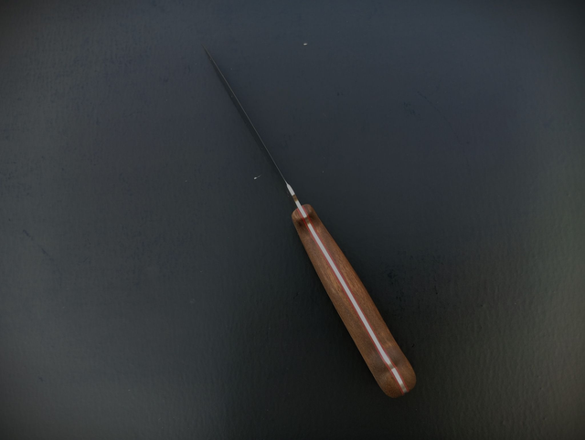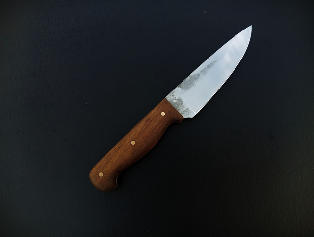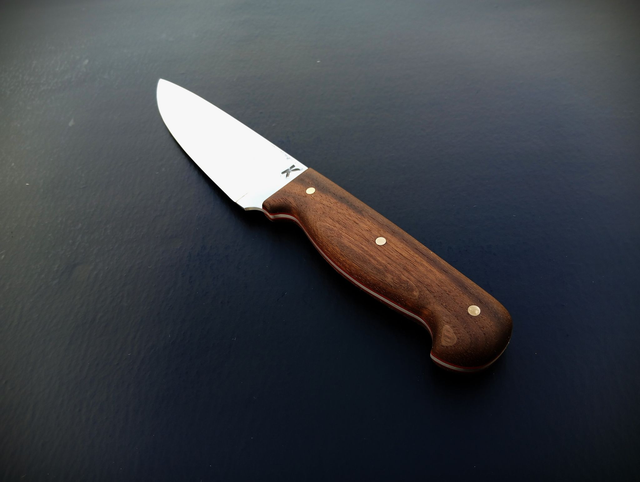 Čepel je z korozivzdorné oceli (1.4116). Střenky jsou z dřeva černého ořechu podložené fíbrem, napuštěny lněným olejem a včelím voskem. Čepy jsou z mosazi. Více o materiálech a zpracování se dočtete v odstavci Materiály na úvodní stránce.